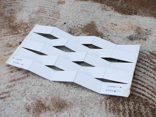 The following photos show 2 examples of adaptable spaces. Both use repetitive geometric modules which stretch and contract according to the desirable function or weather.